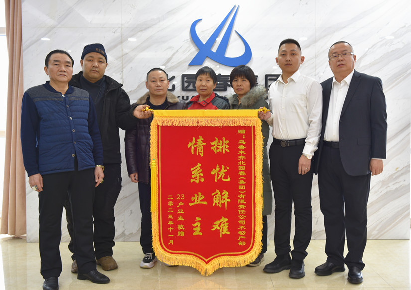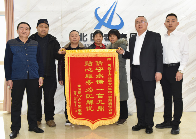 近日,由北園春集團(tuán)不動產(chǎn)部牽頭,結(jié)合實際情況,克服重重困難,給市場配套商服區(qū)的業(yè)主辦理了不動產(chǎn)證。2024年1月22日,業(yè)主代表們給集團(tuán)公司送來了印有“信守承諾、一言九鼎,貼心服務(wù)、為民解憂”字樣的錦旗,表達(dá)自己的感激之情。北園春集團(tuán)牢牢樹立“關(guān)注民生 以誠興業(yè)”的企業(yè)口號,用貼心服務(wù)、暖心態(tài)度著力為商戶、住戶及消費者排憂解難,努力做到想群眾所想,急群眾所急,解決群眾所需所盼。一面錦旗,是一份肯定,更是一份責(zé)任。北園春將在今后的各項工作中不斷取得新進(jìn)展、新突破!